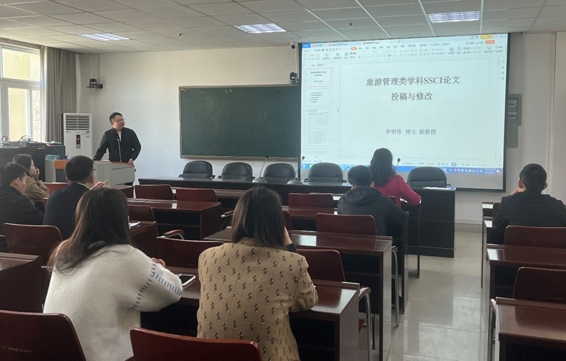 3月13日上午,旅游学院第七期“景明论坛”在经管楼401会议室成功举办。旅游学院李明伟博士作了题为“旅游管理类学科SSCI论文投稿与修改”的学术报告,旅游学院部分师生聆听了报告。