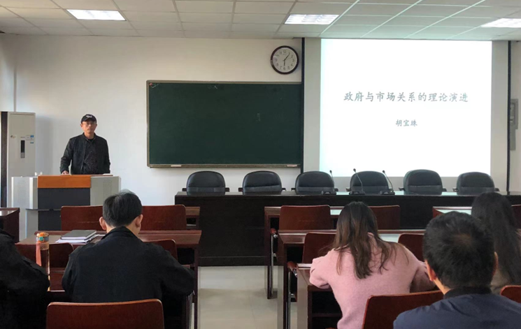 10月11日下午,旅游学院第二期“景明论坛”在经管楼401成功举办。旅游学院副院长胡宝珠作了题为“政府与市场关系的理论演进”的学术报告,旅游学院部分师生聆听了报告。
