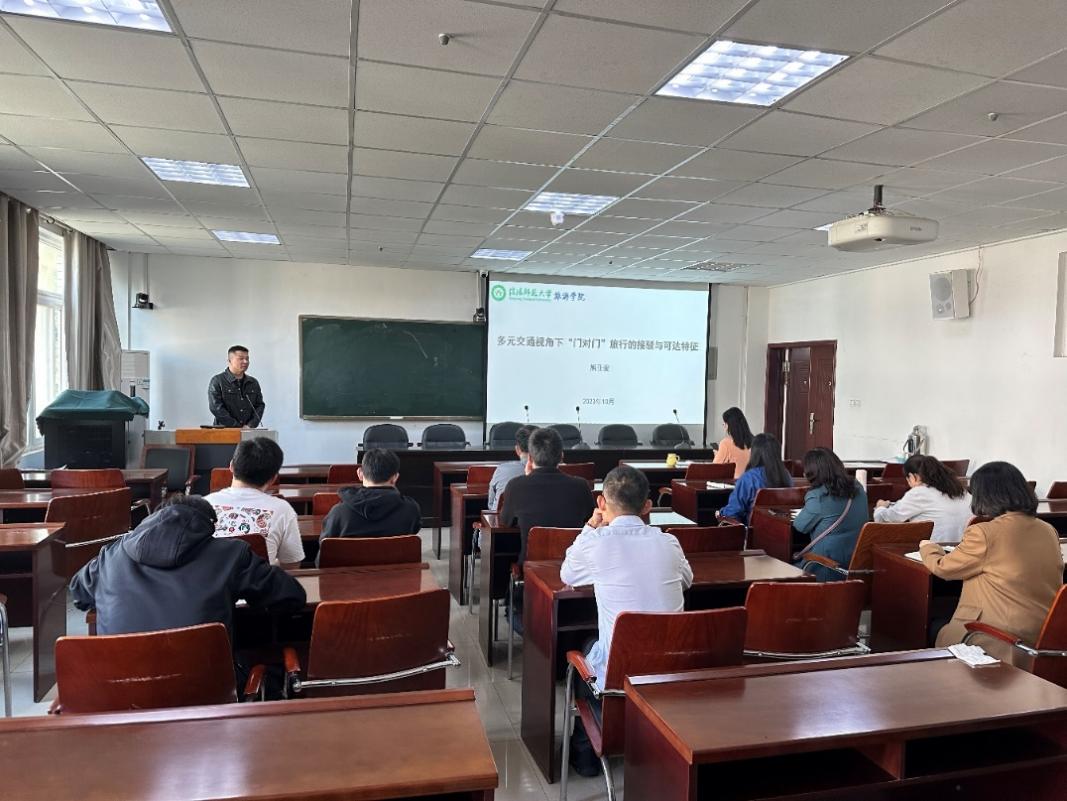 10月24日下午,旅游学院第十七期“景明论坛”在经管楼401室成功举办。熊亚骏博士和李卓凡博士分别作了题为“多元交通视角下‘门对门’旅行接驳与可达特征”与“江汉平原乡村空间重构的特征、机制及效应”的学术报告,报告由吴国琴教授主持,旅游学院部分师生聆听了报告。