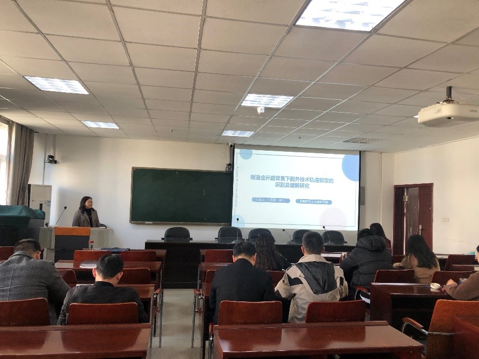 学术报告环节,范博士以中美贸易争端为背景,指出“卡脖子”技术问题的根源在于发达国家实行的技术锁定战略,技术轨道锁定便是其形式之一。如何才能尽早识别国外技术轨道锁定的战略布局,并及时采取有效的破解策略显得尤为迫切,并以锂电池隔膜技术为例提出专利集中战略视角下国外技术轨道锁定的组织方式突破策略。