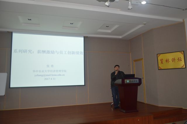 4月11日下午,应旅游学院邀请,华中农业大学教授、博士生导师张勇在贤林讲坛作了题为“薪酬激励与员工创新绩效”的学术报告。报告会由旅游学院院长彭荣胜教授主持,200余名师生聆听了报告。