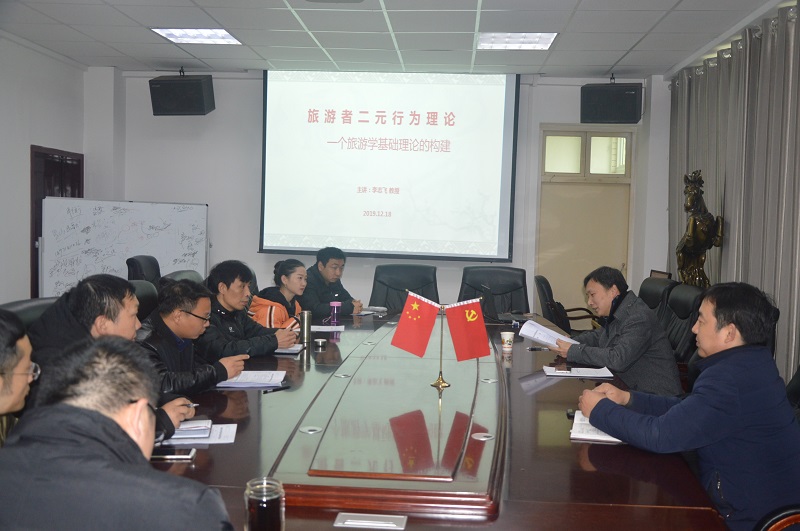 12月18日,应旅游学院邀请,湖北大学博士生导师李志飞教授在经管楼403为旅游学院师生做了题为“旅游者二元行为理论:一个旅游学基础理论的构建”、“国家社科基金项目申报技巧”两场学术报告。报告会由旅游学院副院长郭军升主持。