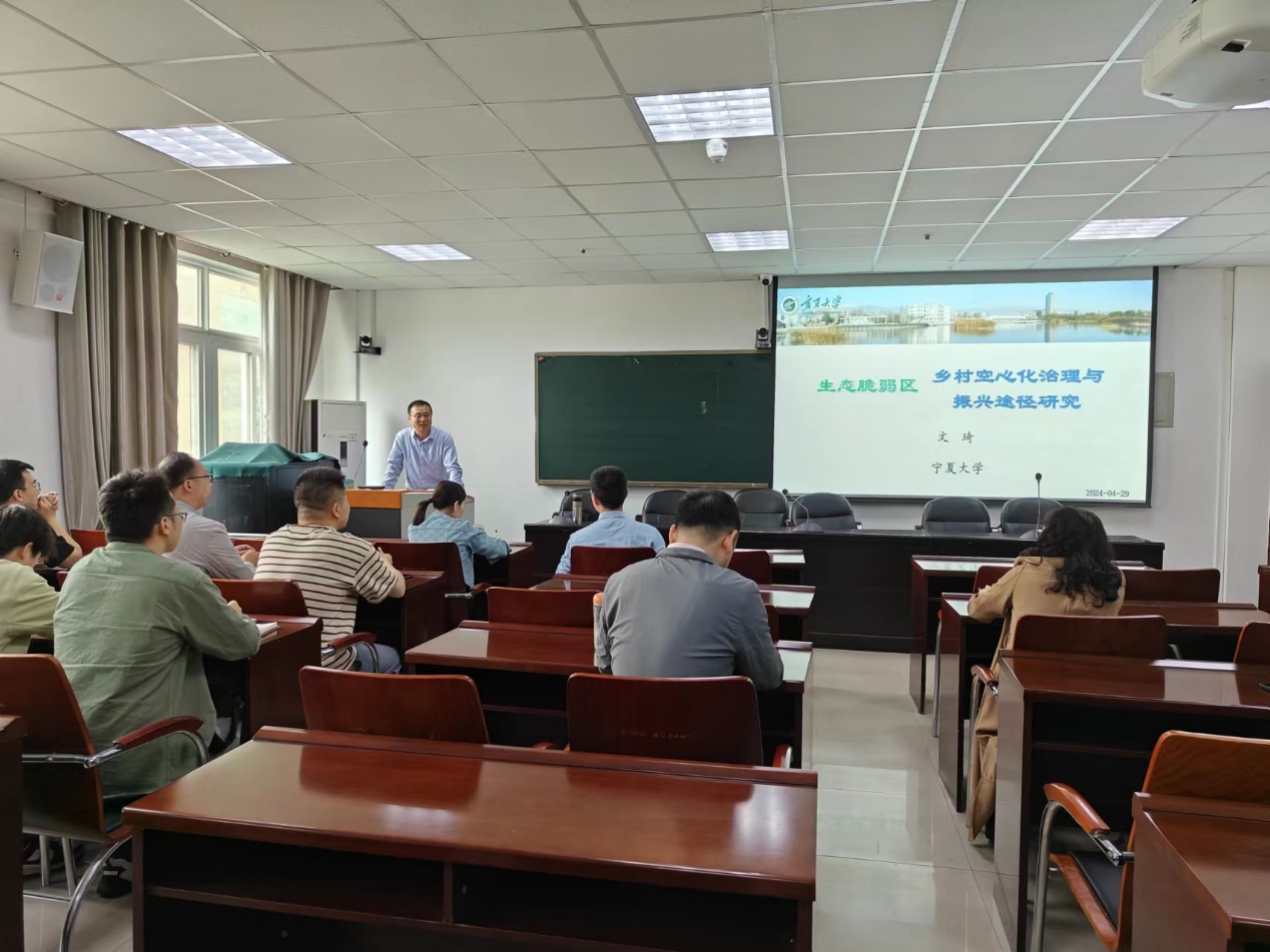 4月29日上午,应旅游学院邀请,宁夏大学教授、博士生导师文琦在经管楼401会议室作了题为“生态脆弱区乡村空心化治理与振兴途径研究”的专题报告。报告会由院长高军波教授主持,旅游学院部分教师和研究生聆听了报告。