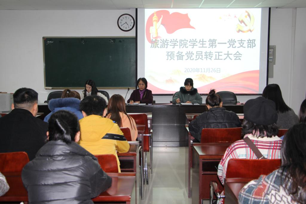 为加强党支部党员队伍建设,11月26日下午旅游学院于经管楼401顺利举行第一党支部预备党员转正大会。旅游学院学生第一党支部书记路璐、党支部全体正式党员和预备党员共29人参加此次会议。会议由党委助理李绮同志主持。