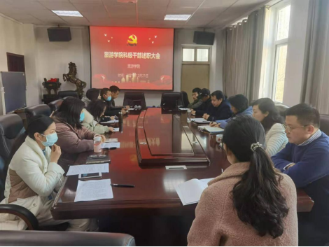 12月21日上午10时,旅游学院在经管楼404会议室召开科级干部考核述职会议,旅游学院党委书记雷前龙、院长高军波和全体领导班子参加了会议。会议由党委书记雷前龙主持。