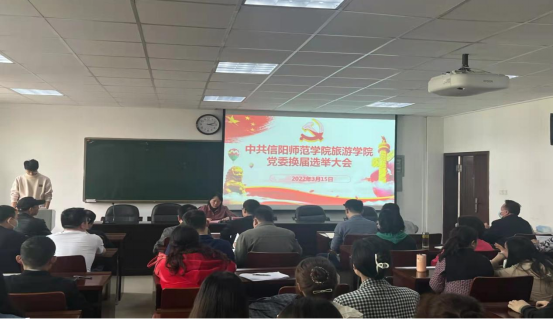 大会在庄严的国歌声中拉开帷幕。大会宣读了《关于同意中共信阳师范学院旅游学院委员会召开换届选举党员大会和新一届委员会委员及书记(副书记)候选人预备人选的批复》,由副院长胡宝珠代表党委向大会做工作报告,整个换届选举程序严格按照上级要求以及有关规定进行,选举产生新一届党委委员会委员。最后,旅游学院召开新一届党委会第一次会议,选举书记、副书记。