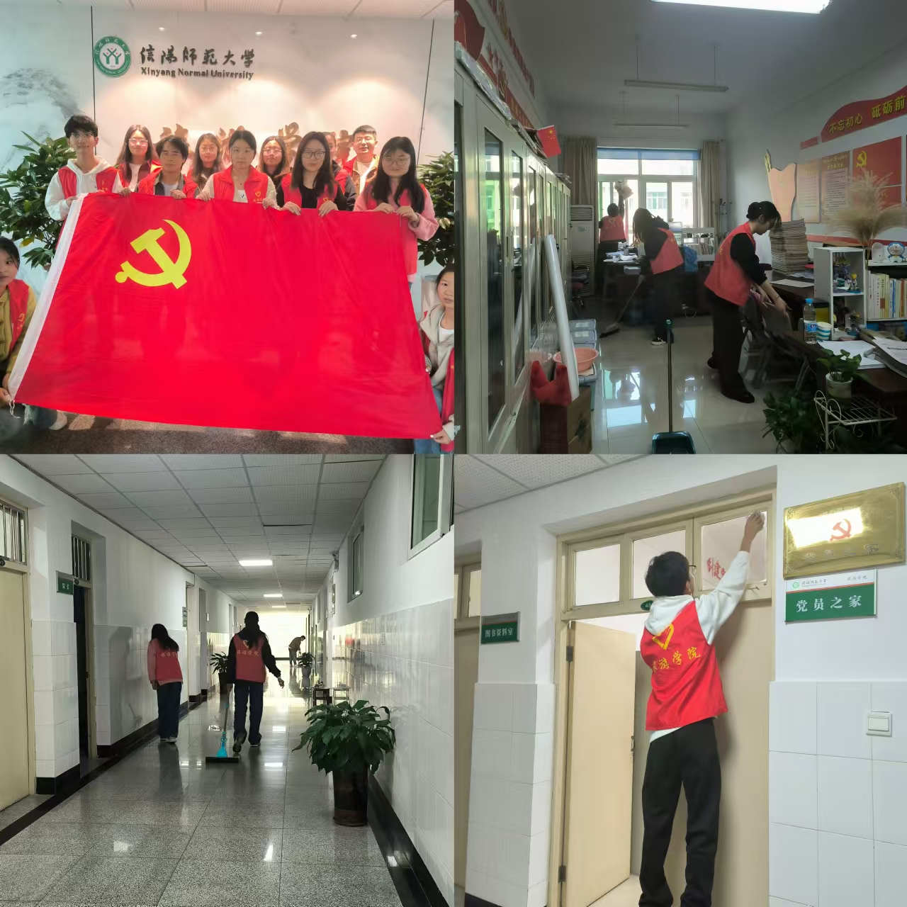 11月2日下午,旅游学院第42期党员发展对象培训班的成员们在经管楼四楼集合。他们身穿红色马甲,在小组长的带领下分为三组,分别负责打扫经管楼四楼办公室与楼道的卫生,他们积极参与,用扫帚和拖把清理地面,用抹布清理门框上的灰尘和窗户缝里的积尘,细心的同学还把办公室桌面上的文件夹和资料有序放好。在大家的共同努力下,走廊与办公室呈现出焕然一新的模样,打扫完成后,他们将劳动工具归位。接着,他们又来到楼下电动车停放区域,将随意停放的电动车搬到指定停车位,依次排好,不一会,停车区域实现了从无序到有序的蜕变。活动结束后,他们与旅游学院的旗帜合影,圆满完成了此次活动。