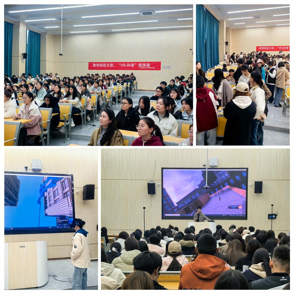 为帮助旅游管理新生深入了解学科前沿,感知科技与文旅融合的魅力,10月22日,旅游学院在淮河校区实验楼101教室开展“VR+科普”数智赋能文旅新体验活动。校本部师生代表和淮河校区2025级旅游管理专业全体新生参与了此次活动。