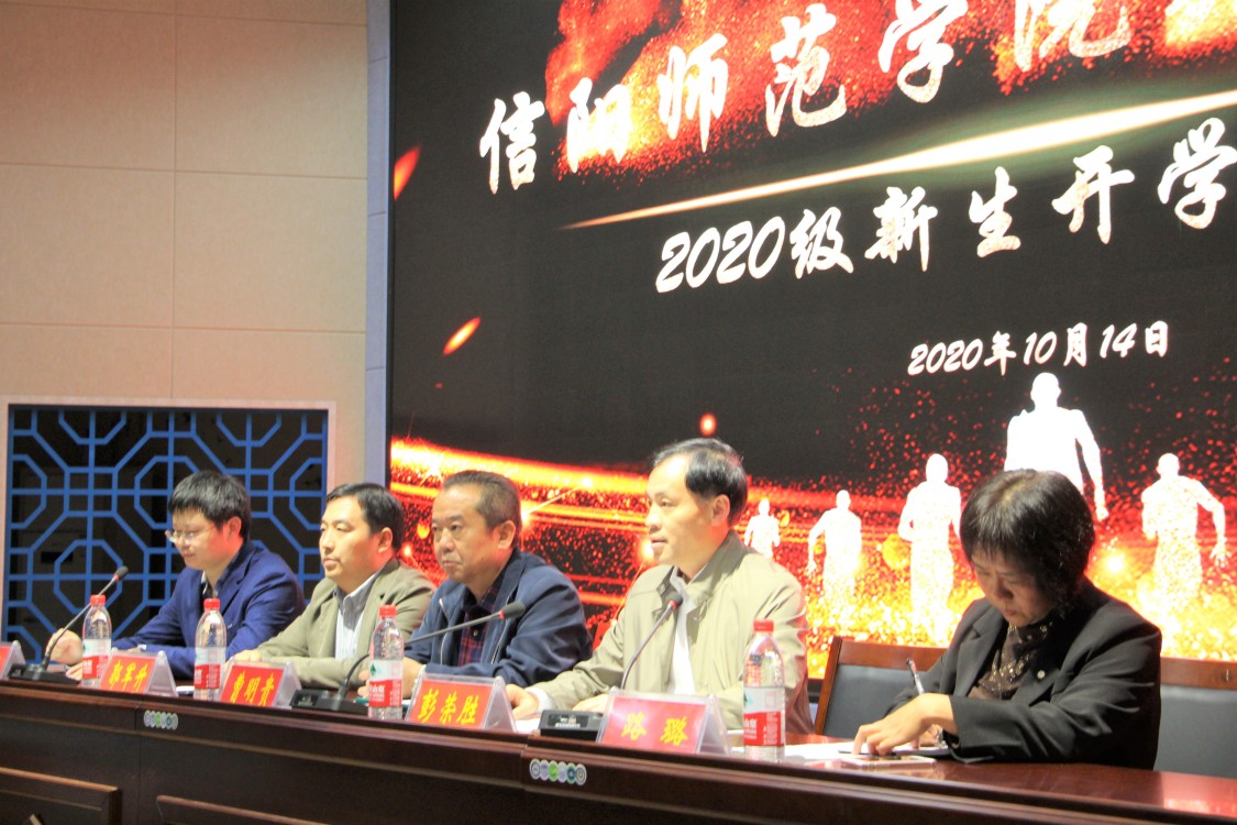 10月14日晚,旅游学院于综合楼601举行2020级新生开学典礼。党委书记曹明贵、院长彭荣胜、副院长郭军升、副处级辅导员路璐、各教研室负责人和全体2020级新生参加了典礼,会议由路璐老师主持。