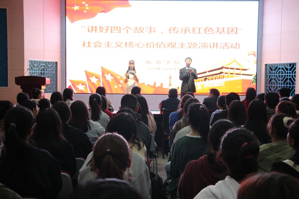 为加强爱国主义教育,培养德智体美劳全面发展的社会主义建设者和可靠接班人,11月9日旅游学院于土木楼601开展了“讲好四个故事,传承红色基因”社会主义核心价值观主题教育活动。此次活动邀请到党委书记曹明贵、副院长郭军升、教研室主任胡宝珠、党委秘书闫会姝、20级辅导员叶晓娟出席。活动由刘泽宽、和淑明主持。