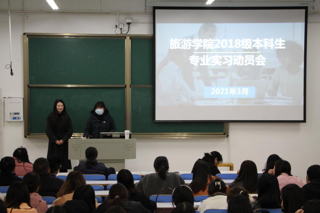 3月10日,旅游学院2018级本科生专业实习动员会于社科楼215召开,副院长郭军升、副处级辅导员路璐、科研主任王晓璐、教务员张俊等领导以及2018级学生参加了此次会议。会议由王晓璐主持。