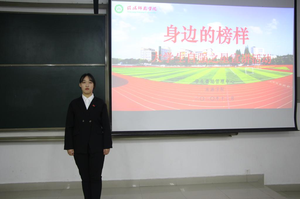 活动伊始首先是来自体育学院的王梦卓为大家讲述青春由磨砺而出彩人生因奋斗而升华》,她学习成绩优秀连续两年学习成绩与综测成绩位居班级第一积极参加活动并获取多张证书青年要始终秉持决战决胜的姿态不负期望不负嘱托奋斗前行让青春光芒照耀新时代其次是数学与统计学院贾晴岚为大家带来心中所信必将远行面向未来走好新时代的长征路我们更需要坚定理想信念矢志拼搏奋斗最后由音乐与舞蹈学院许美佳为大家带来奋发进取向阳而生她创立了舞蹈机构而且有自己独立的经济能力敢于吃苦不畏艰难不断突破做常人所不敢做之事