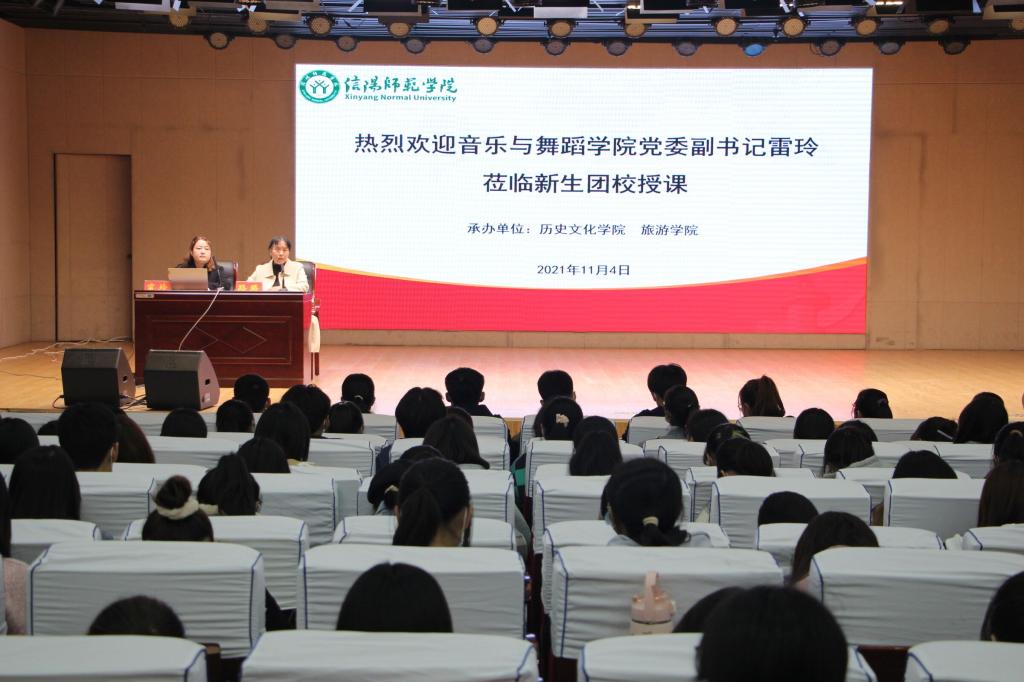 为强化新生团员政治意识,提高新生团员思想觉悟。11月4日,旅游学院在理科楼报告厅开展新生团校学习活动。本次新生团课由音乐与舞蹈学院党委副书记雷玲老师主讲,旅游学院党委副书记路璐老师主持,团委书记赵子鉴及学院2021级全体新生参与本次活动。