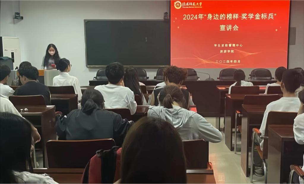 为深入学习贯彻落实党的二十大精神和习近平新时代中国特色社会主义思想,进一步拓展学生资助工作的育人功能,充分发挥奖学金获得者青年榜样的先进典型导向作用,激励广大学生追寻榜样之光,勤奋学习、刻苦钻研、全面发展,推动良好校风学风建设,4月24日晚,旅游学院在经管楼401开展“身边的榜样·奖学金标兵”宣讲会。旅游学院2022级、2023级学生代表参加了此次宣讲会。