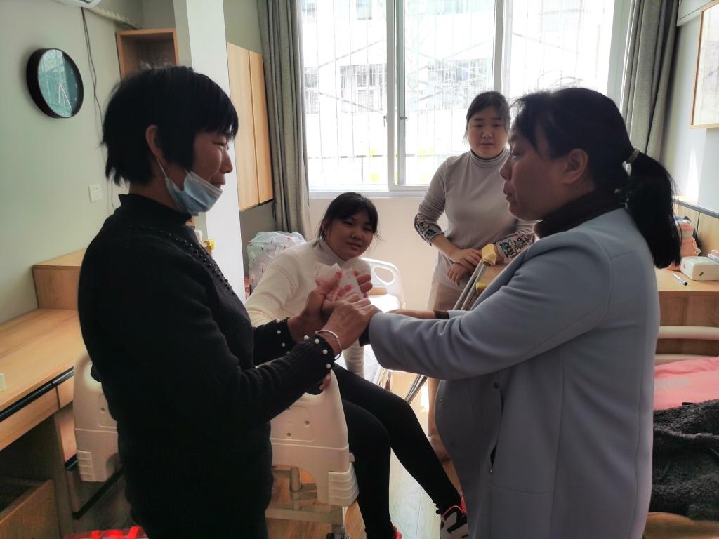 靳蕊因为寒假期间腿部骨折,上下楼不便,又担心课程问题就返回学校。学院积极与学校心理健康教育辅导中心联系,为她申请了爱心小屋。来到爱心小屋,路书记与她亲切交谈,询问身体康复情况和生活不便等问题,送来牛奶等生活用品,并代表学院给予该生一定的经济帮扶,鼓励学生放松心情,调整心态,以坚韧的意志面对生活中的困难,争取早日康复,使学生和家长感到无比温暖。由于家长不能留下照顾,兼职辅导员闫会姝给班级同学排班照顾,解决了学生和家长的后顾之忧。