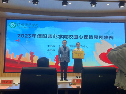 5月25日,信阳师范学院“校园心理情景剧”决赛在大学生活动中心博雅讲堂举行,我院学子杨慧琳,张壮壮等八名同学共同出演的心理情景剧《从心出发,向阳而行》荣获一等奖。