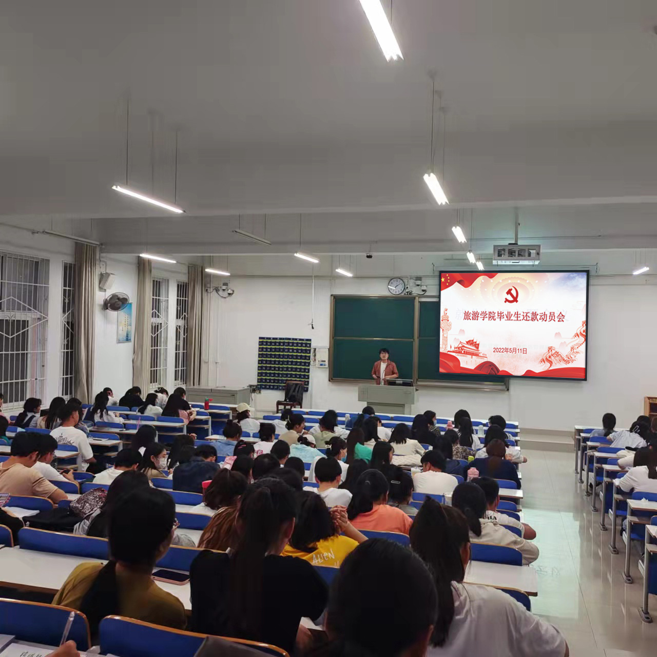 为扎实做好毕业生助学贷款相关工作,增强毕业生诚信还款意识,确保助学贷款工作顺利开展,5月4日晚。旅游学院召开2022届毕业生还款动员会。本次会议由旅游学院资助专员赵子鉴主讲。