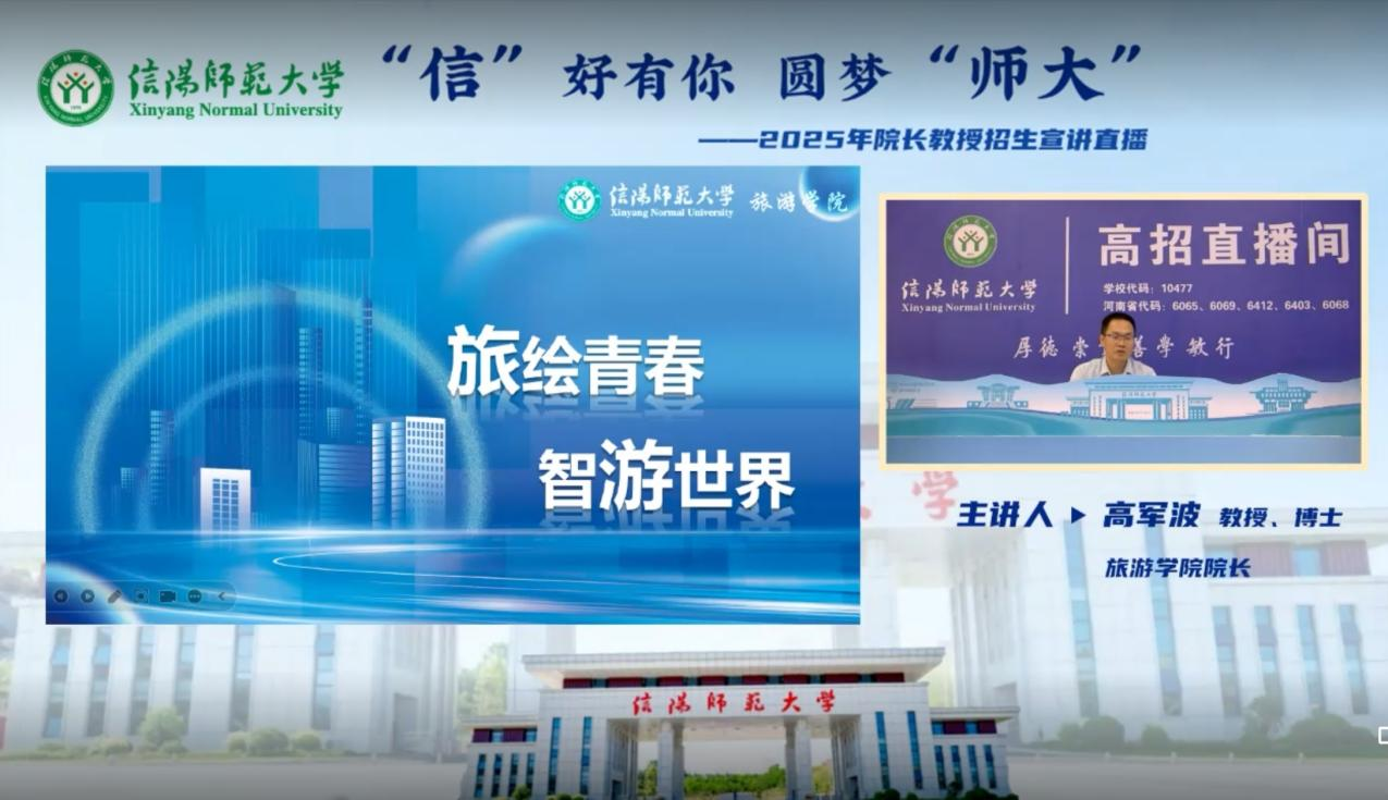 为满足广大考生和家长的高考咨询需求,搭建考生、家长与高校之间的沟通桥梁,5月30日下午,旅游学院在逸夫楼104开展“旅绘青春,智游世界”2025年线上专题招生宣传直播活动。旅游学院院长高军波进行了现场直播讲解,全方位、多角度进行解疑释惑,吸引数千名考生及家长在线互动参与。