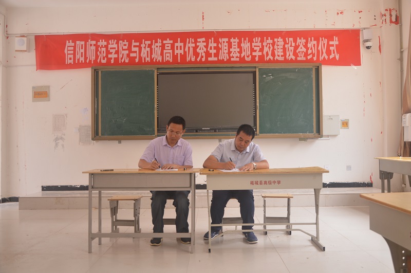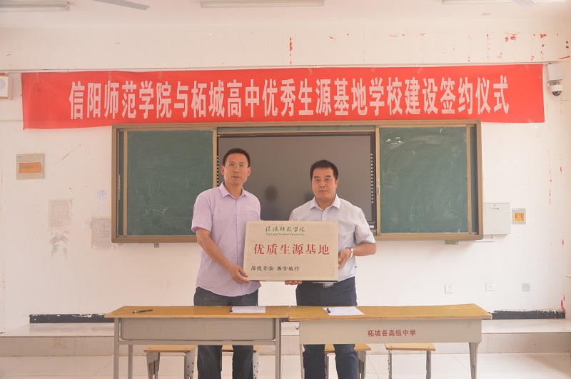 招生宣传队分别到了柘城县高级中学、虞城县高级中学、虞城县第二高级中学、夏邑县第一高级中学、孔祖中等专业学校、永城市第一职业高级中学开展招生宣传工作。通过现场座谈、师生交流、设置咨询摊点、发放张贴宣传资料、播放学校招生宣传片等方式,帮助考生及家长全面了解我校发展历程、学科设置、科研实力、师资力量、办学特色等情况以及学校今年的招生政策。同时,分别与柘城县高级中学、夏邑县第一高级中学进行了“建立‘信阳师范学院生源基地’协议书签订以及“优质生源基地”授牌工作。