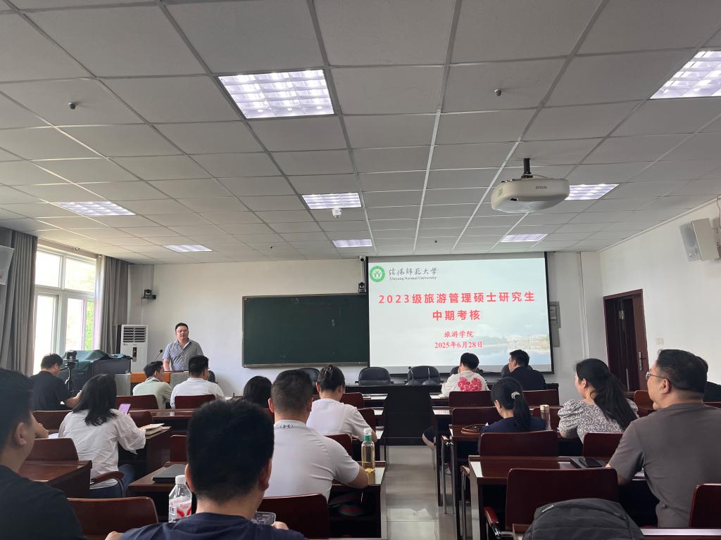 根据《信阳师范大学研究生开题与中期考核实施办法》要求,6月28日,旅游学院2023级旅游管理硕士研究生中期考核会在经管楼401会议室举行。会议由谭美容主持,李明伟博士任中期考核评委会组长,委员由院内6位导师组成,共有30名硕士研究生参加本次考核。