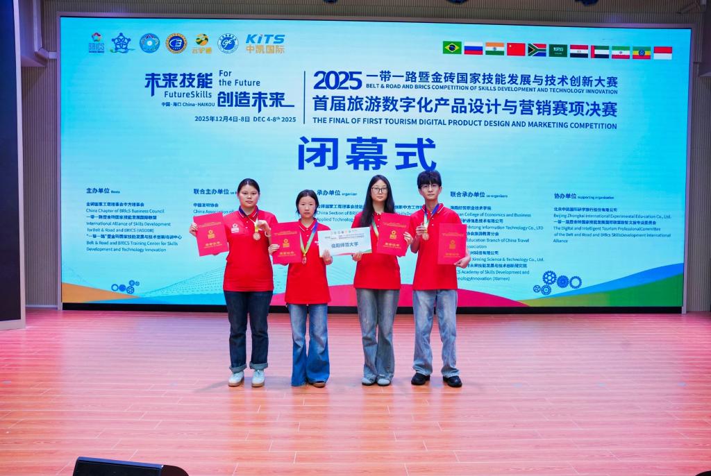 近日,由“一带一路”暨金砖国家技能发展国际联盟、“一带一路”暨金砖国家技能发展与技术创新培训中心主办,中国发明协会、教育部中外人文交流中心联合主办的2025“一带一路”暨金砖国家技能发展与技术创新大赛之首届国际研学课程设计与实施创新赛项、首届旅游数字化产品设计与营销赛项全国总决赛在重庆和海口相继落下帷幕。旅游学院作品分获“国际研学课程设计与实施创新赛项”三等奖(参赛学生:李明璁、吴思妤、佟晴欣、肖艳,指导教师:宋春巧)、“旅游数字化产品设计与营销赛项”三等奖(参赛学生:张馨方、万硕、赵婉婉、常顺,指导教师:魏超)。