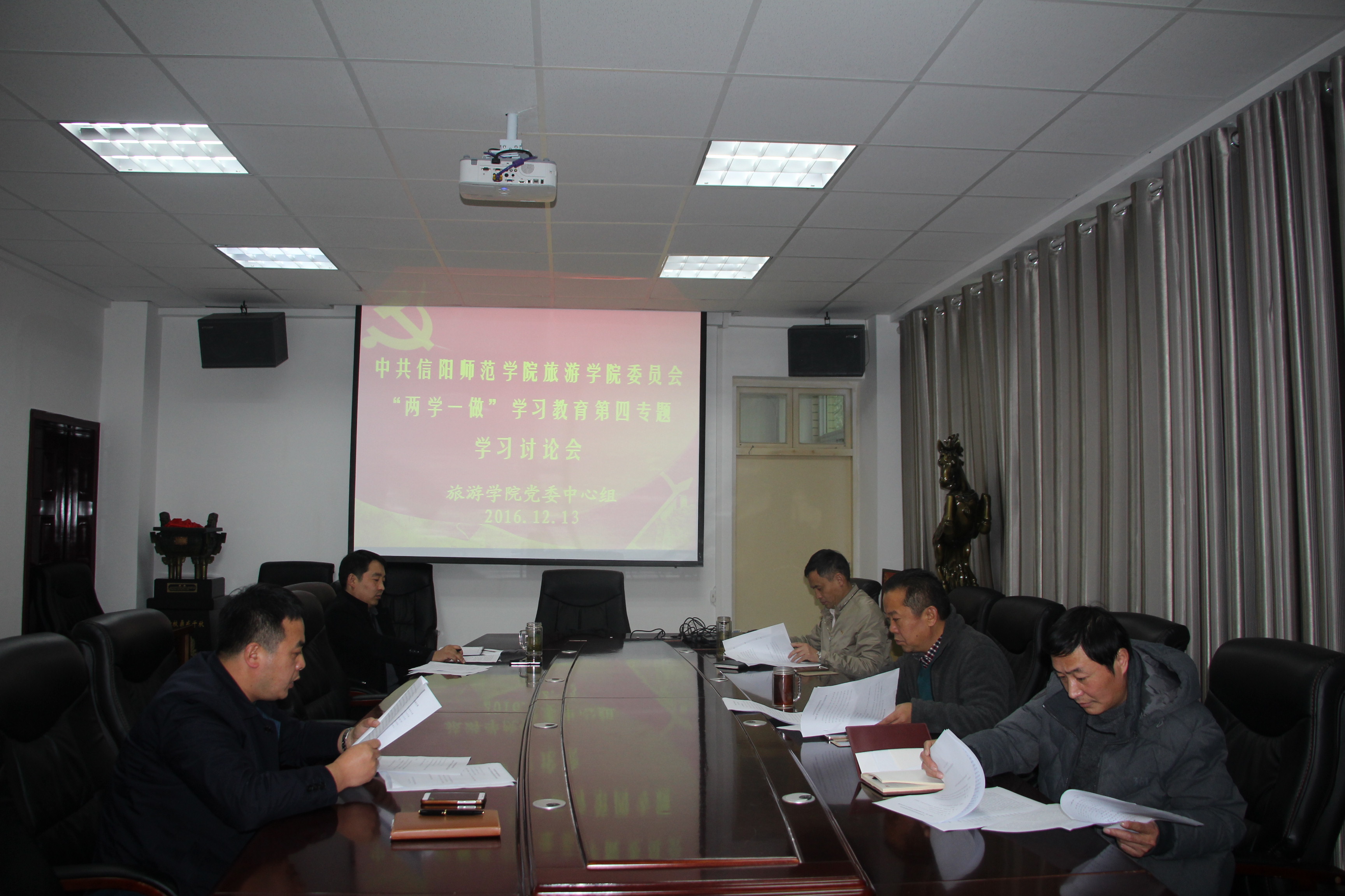 12月13日下午,旅游学院党委中心组在经管楼403会议室开展“两学一做”学习教育第四专题“讲奉献、有作为”学习研讨。旅游学院党委书记曹明贵,院长彭荣胜,副院长潘国兵、郭军升,副书记张晓峰参加了学习研讨,会议由曹明贵主持。