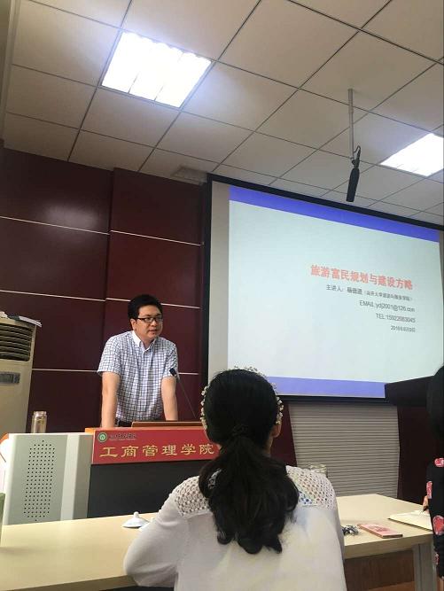 6月8日上午,应我学院邀请,南开—天大旅游规划协同创新中心秘书长,中国海洋旅游研究中心副主任,杨德进博士在经管楼310报告厅作了一场题为“乡村旅游富民规划建设方略”的学术报告。报告会由学院院长曹明贵教授主持,80余名师生聆听了报告。