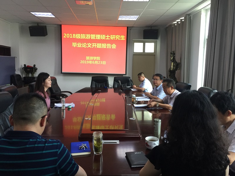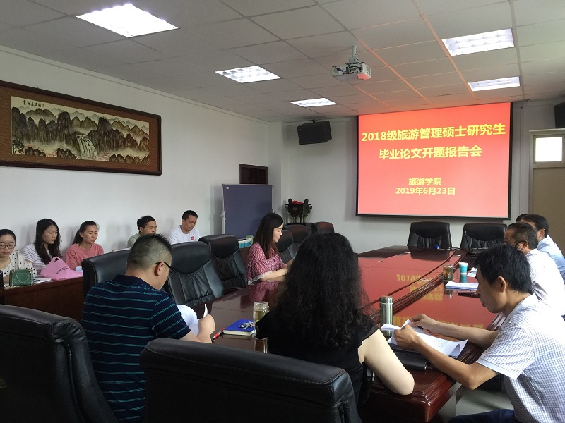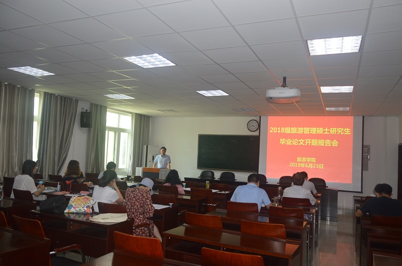 6月23日上午,旅游学院2018级旅游管理硕士研究生毕业论文开题报告会分两组在经管楼401和403会议室同时举行。旅游学院院长彭荣胜教授和洛阳师范学院程金龙教授分别任两组评审小组组长并主持报告会。