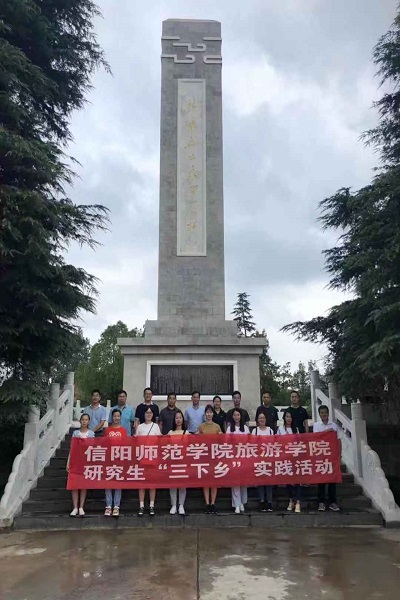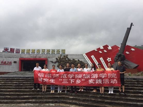 为深入学习贯彻习近平新时代中国特色社会主义思想和党的十九大精神,引领教育广大青年研究生在切实感受新中国成立70周年取得的巨大成就中坚定“四个自信”,激发研究生的报国情怀和奋斗精神,使其在实现中国梦的新长征中勇于担当时代重任。8月10日至12日,信阳师范学院旅游学院2018级全体研究生在指导教师的带领下,来到了河南省第一个县级苏维埃政权、河南省第一块革命根据地豫东南革命根据地——商城县,开展为期三天的研究生“三下乡”社会实践暨“我是中国研究生,我为祖国点赞”主题活动。
