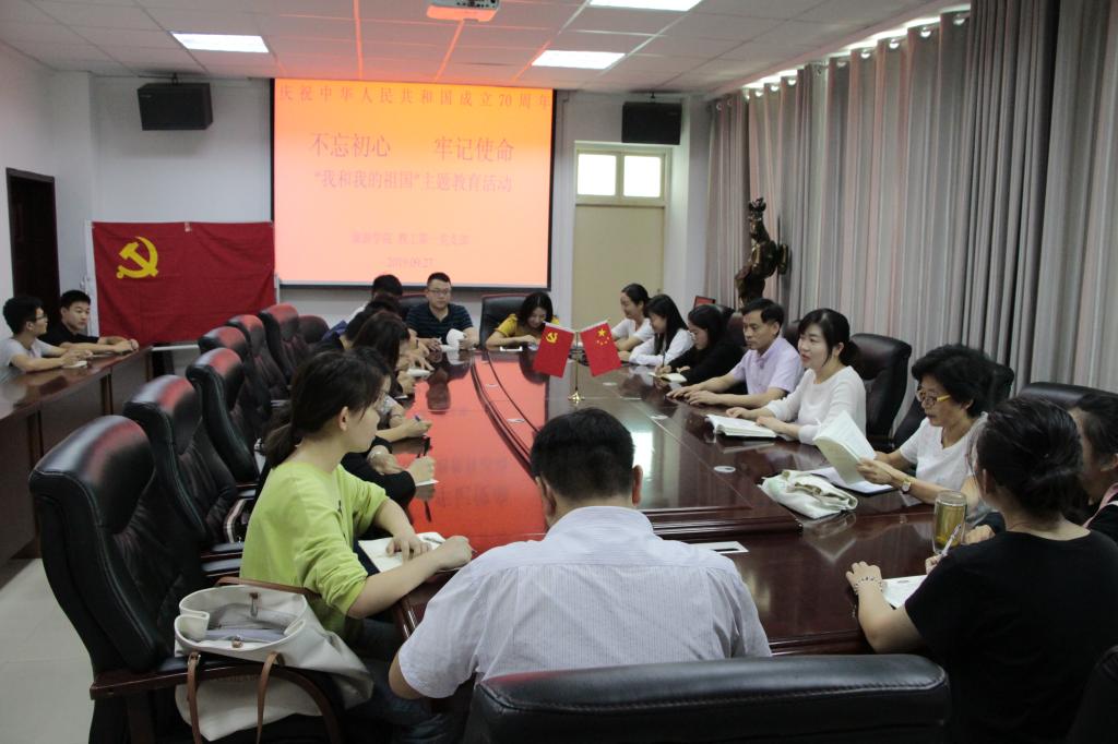 为庆祝中华人民共和国成立70周年,响应学院党委关于“不忘初心、牢记使命”主题教育的要求,进一步深化“我和我的祖国”主题教育活动,9月27日,旅游学院教工第一党支部和部分学生代表在经管楼403开展“我和我的祖国”主题党日活动。院长彭荣胜作为党委委员联系支部成员,以普通党员身份参加会议,会议由教工第一党支部书记谌静主持。