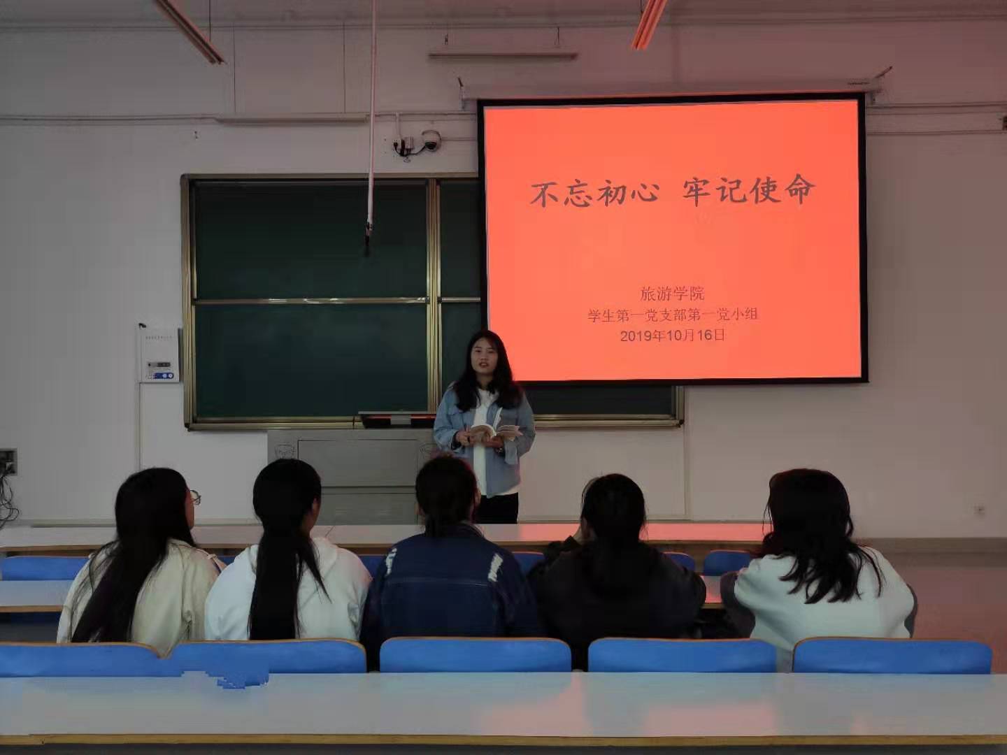 10月16日下午,旅游学院学生第一党支部第一党小组在社科楼213教室召开“不忘初心,牢记使命”主题教育活动,第一党小组全体党员参与,会议由党小组长顾盼盼主持。