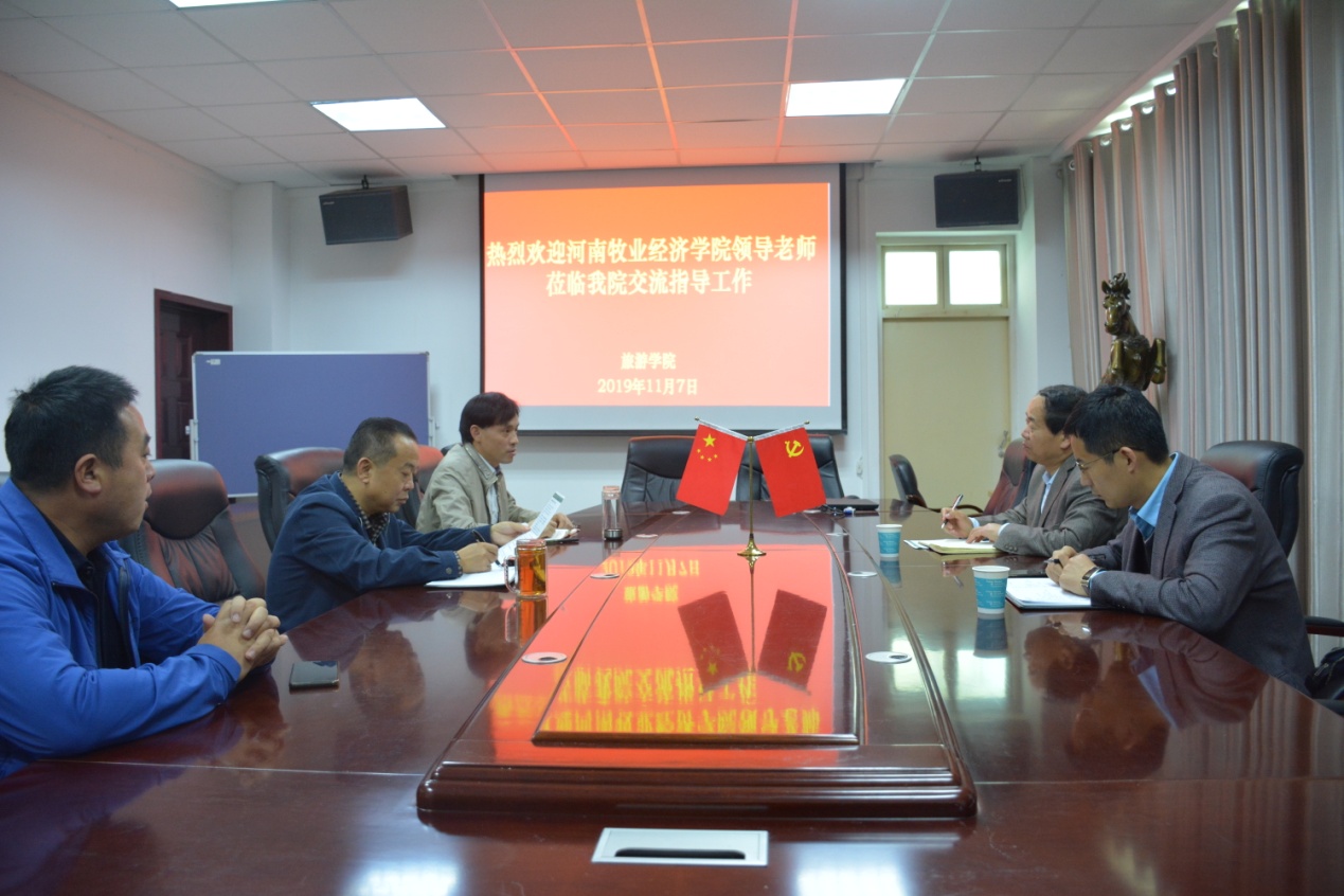 2019年11月7日下午,河南牧业经济学院旅游学院党委书记李喜民、物流与电商学院党委书记于晓胜来我院考察交流。我院党委书记曹明贵、院长彭荣胜、党委副书记张晓峰及相关教师参加此次座谈会。座谈会由曹明贵主持。