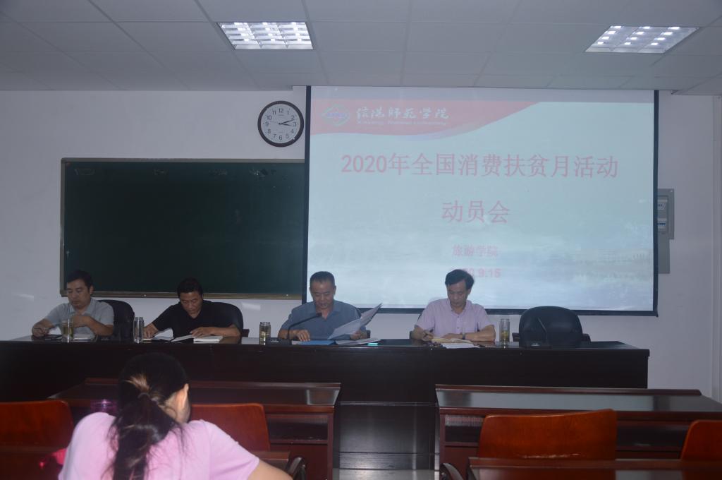 为积极响应2020年全国消费扶贫月活动,助力地方经济发展。9月15日下午,旅游学院在经管楼401会议室召开动员大会,全体教职工参加会议。会议由曹明贵主持。