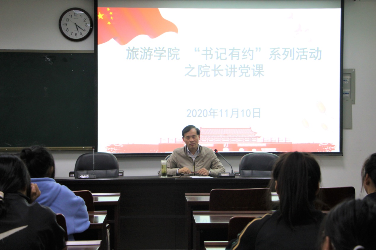 11月10日下午,旅游学院院长彭荣胜教授在经管楼401会议室以“推动形成优势互补高质量发展的区域经济布局(习近平谈治国理政第3卷)”为题为大一入党积极分子上了一堂别开生面的党课。