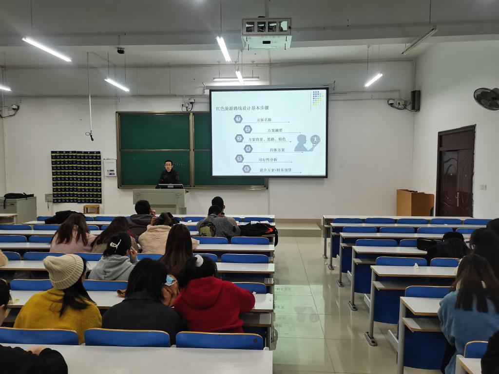 11月22日晚上,旅游学院李洋洋博士于社科楼215教室进行了以“福建南平红色旅游线路设计”为主题的讲座,2018级旅游管理二班和2018级酒店管理班全体同学参加了本次讲座。