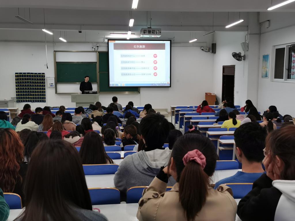 为了大力弘扬民族精神,加强同学们爱国主义情怀,坚定同学们的共产主义理想和信念,旅游学院余康博士于11月19日在社科楼215开展了“红色旅游”主题讲座,2018级全体学生参加了此次活动。