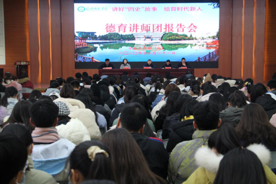为加强新时代高校“四史”教育,建立“不忘初心,牢记使命”主题教育长效机制,也是对传承与弘扬党优良传统的新要求。旅游学院于12月22日在逸夫楼报告厅参加了信阳师范学院举行的“讲好“四史”故事,培养时代新人”德育讲师团报告活动。旅游学院党委副书记路璐、专职辅导员黄倩出席活动。