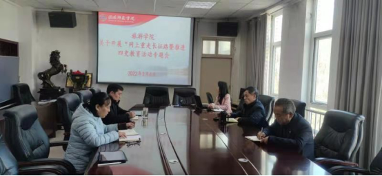 2021年3月4日上午,旅游学院在经管楼会议室召开“网上重走长征路”暨推动“四史”学习教育活动专题会,学院全体领导班子成员、团委书记、专职组织员参加了会议。会议由院党委书记曹明贵主持。