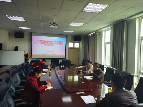 为深入学习习近平新时代中国特色社会主义思想,贯彻落实新时代党的建设总要求和新时代党的组织路线,4月26日下午,旅游学院党委在经管楼403召开党委理论学习中心组会议,专题学习《中国共产党普通高等学校基层组织工作条例》(以下简称《条例》)。旅游学院班子成员参加此次会议,会议由党委书记曹明贵主持。