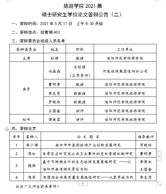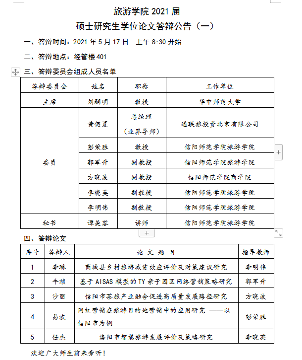 旅游学院2021届硕士研究生毕业论文答辩会顺利举行