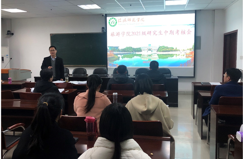 根据《信阳师范学院研究生开题与中期考核实施办法》相关要求,2月26日,旅游学院2021级旅游管理专业硕士研究生中期考核会在经管楼401会议室举行。会议由李明伟博士主持,高军波教授任中期考核评委会主席,委员由院内4位导师组成,共有14名硕士研究生参加了本次考核。