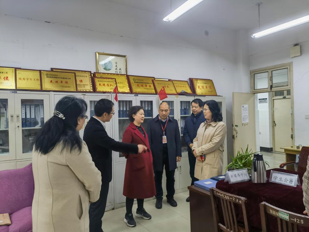 3月23日上午,副校长王金云带领学校学生处、研究生处、纪委和团委一行来到旅游学院检查指导工作。他们首先查看了党委办公室和学生工作办公室的办公条件和文档文案,看望并慰问了全体辅导员,并与学院领导班子就在校学生基本情况、学生专业实习、学生日常教育管理和服务等工作进行了交流。