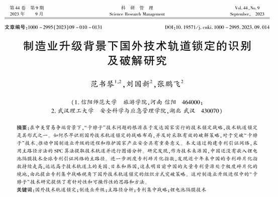 近日,旅游学院范书琴博士在CSSCI期刊《科研管理》上发表题为“制造业升级背景下国外技术轨道锁定的识别及破解研究”的学术论文,并被选为封面文章。《科研管理》为国家自然科学基金委员会管理科学部认定的管理科学A级重要期刊,被五大检索库(CSSCI,北大核心,JST,CSCD,AMI核心)同时收录。据悉,该论文是信阳师范大学作为第一产权单位首次在《科研管理》期刊上发表成果。