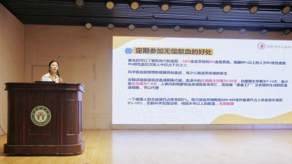 为鼓励大学生积极参加无偿献血,培养青年学子的担当奉献精神,10月14日上午,旅游学院积极参加了信阳市中心血站在理科楼报告厅举办的“无偿献血,为爱接力”主题宣讲活动,学院院党委副书记路璐和2023级全体新生参与此次活动,宣讲活动由血站卢小翠医生主持。