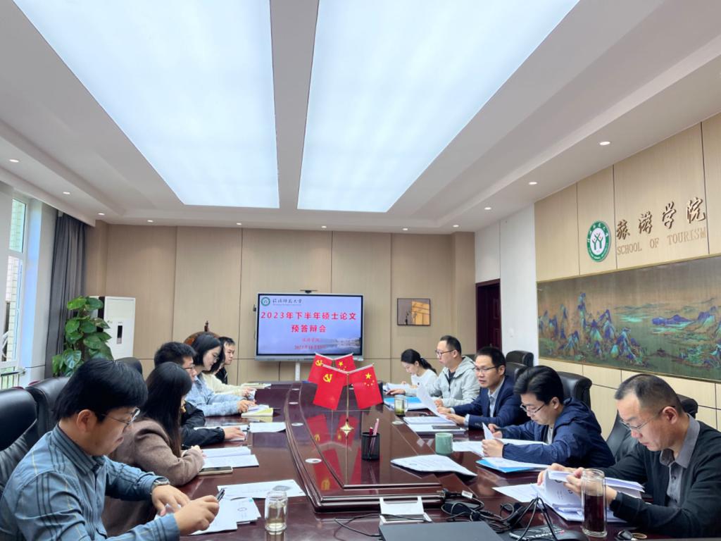 10月23日上午,旅游学院2023年下半年硕士论文预答辩会在经管楼401会议室进行,评委主席由高军波教授担任,委员由校内导师4人组成。