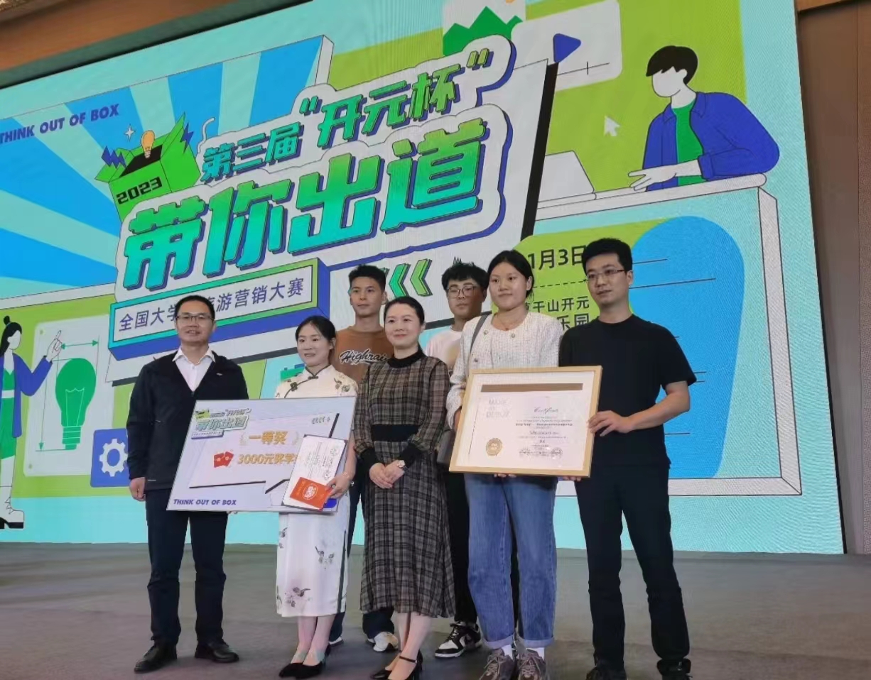 2023年11月3日,由教育部高校旅游管理类专业教指委指导、长三角旅游职业教育联盟等部门联合承办的第三届“开元杯”全国大学生旅游营销大赛决赛在杭州莫干山圆满落下帷幕。我校旅游学院本科生团队“星空梦想队”(张文慧、梁福纹、谷春端、祝奥辉)以“拥抱自然,开创满‘竹’童年”为设计主题,在全国总决赛中获一等奖。同时张文慧同学也荣获“最佳推荐官”称号,宋春巧、王亚文获“优秀指导教师”。