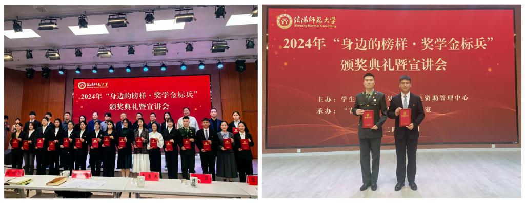 4月11日下午,学校文科楼一楼报告厅华灯闪烁,十名“身边的榜样•奖学金标兵”颁奖典礼暨宣讲会如期举行,十名身边的榜样•奖学金标兵和十名入围者闪亮登场。通过层层选拔,旅游学院2020级旅游管理本科三班王世文、2022级酒店管理四班孙梦园(崇实书院)两名学子成功入选。在颁奖和宣讲会现场,王世文讲述了自己充实的大学生活、光荣的军旅生涯和自信的创新创业经历,孙梦圆讲述了自己思想、学习、工作和实践中的总总收获,赢得了观众的阵阵掌声。