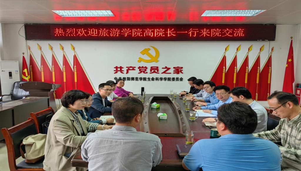 4 月 15 日,河南科技智库大别山区高质量发展研究基地高军波教授带领智库基地核心成员到信阳师范大学生命科学学院(茶学与食品科技学院)、大别山实验室调研座谈。生命科学学院院长饶本强教授、副院长周棋赢博士等 10 余名教授、博士参与了本次座谈。