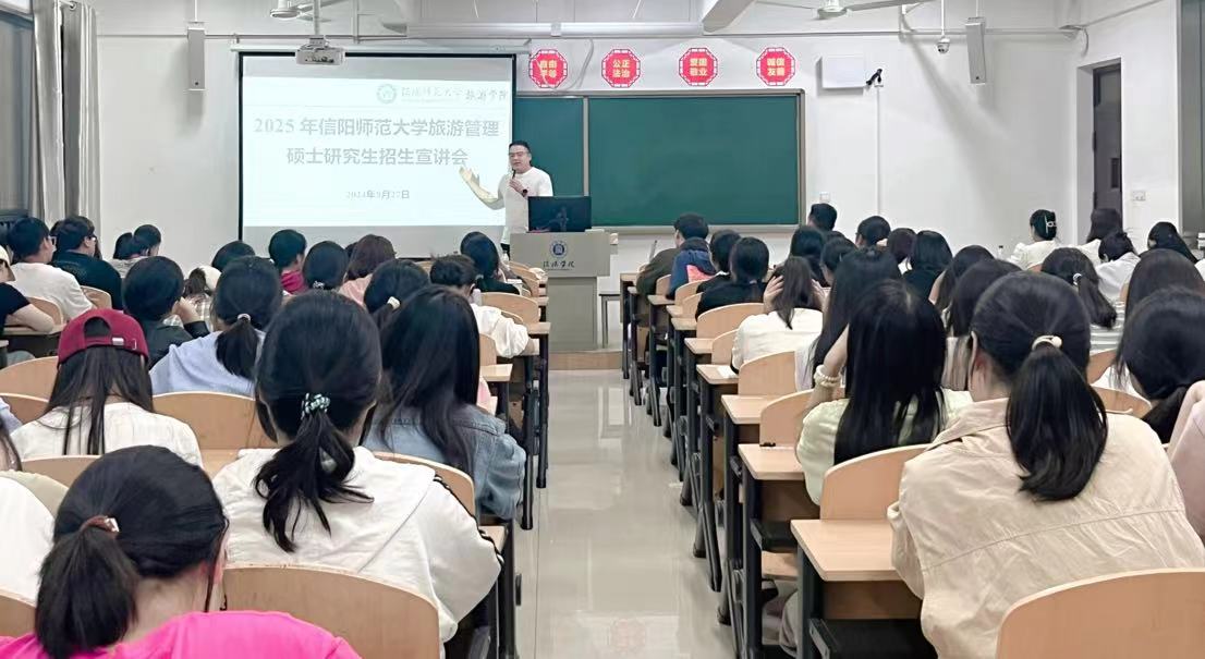 为进一步做好2025年度旅游学院研究生招生宣传、咨询工作,让更多考生深入了解学院的研究生招生政策、培养模式及导师研究方向等情况,9月27日晚上,旅游学院分管研究生工作的李明伟博士和研究生工作秘书谭美容老师前往信阳学院商学院开展了一场硕士研究生招生宣讲活动。